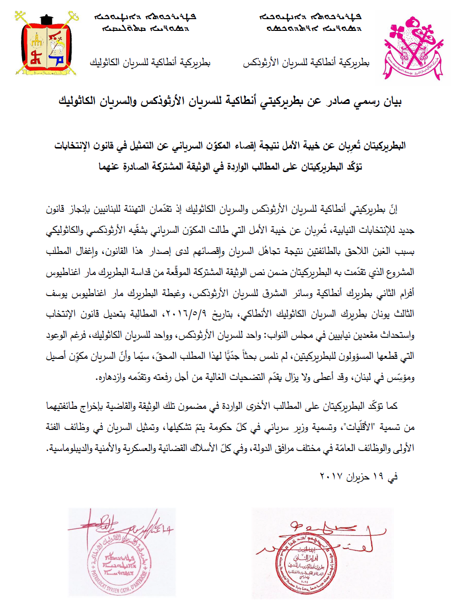 بيان مشترك – قانون الإنتخابات